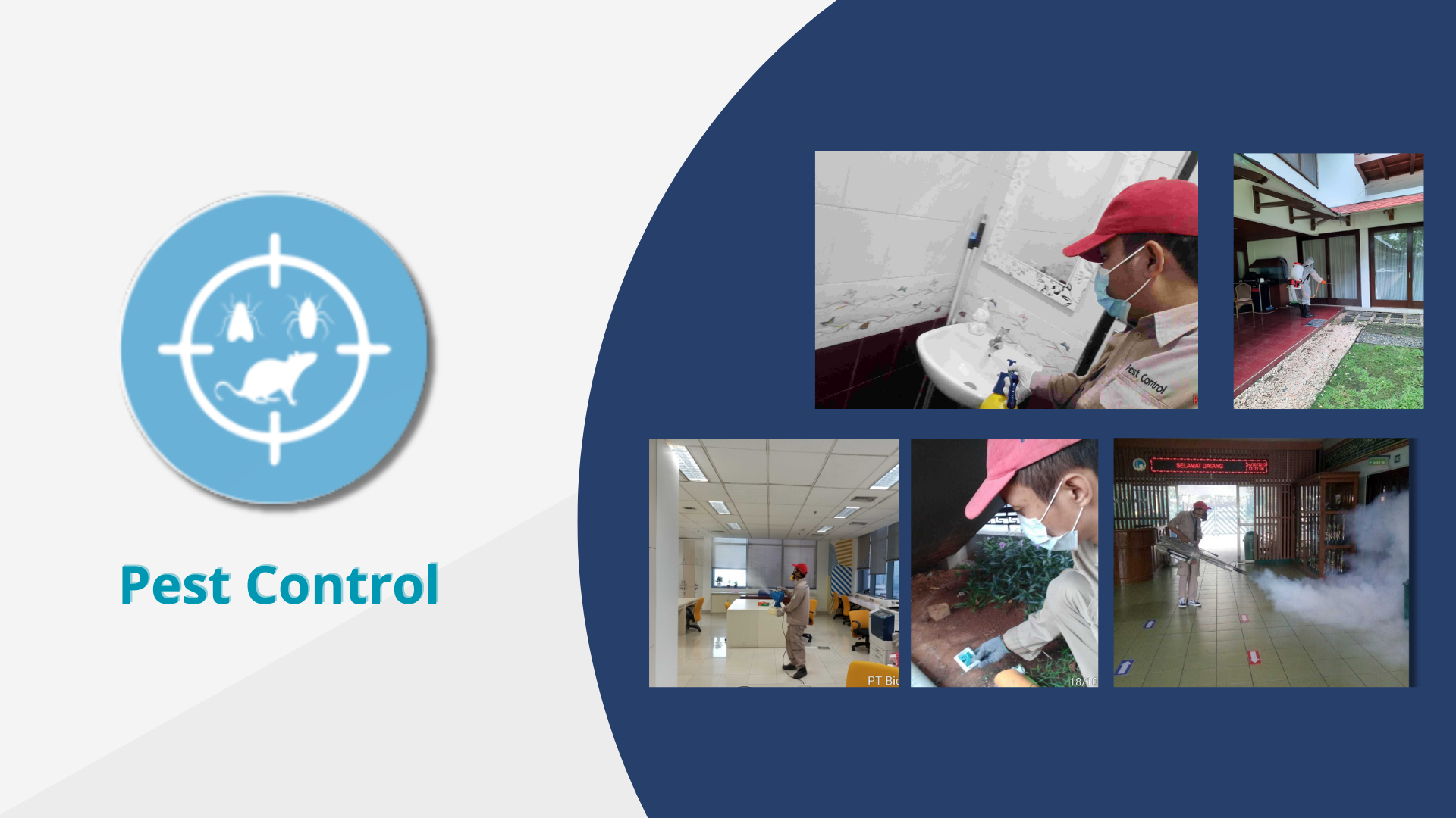 Jasa Pengendalian Hama dengan metode IPM (Integrated Pest Management). Hama sasaran berupa serangga terbang/melata, tikus, dan hama pengganggu lainnya.